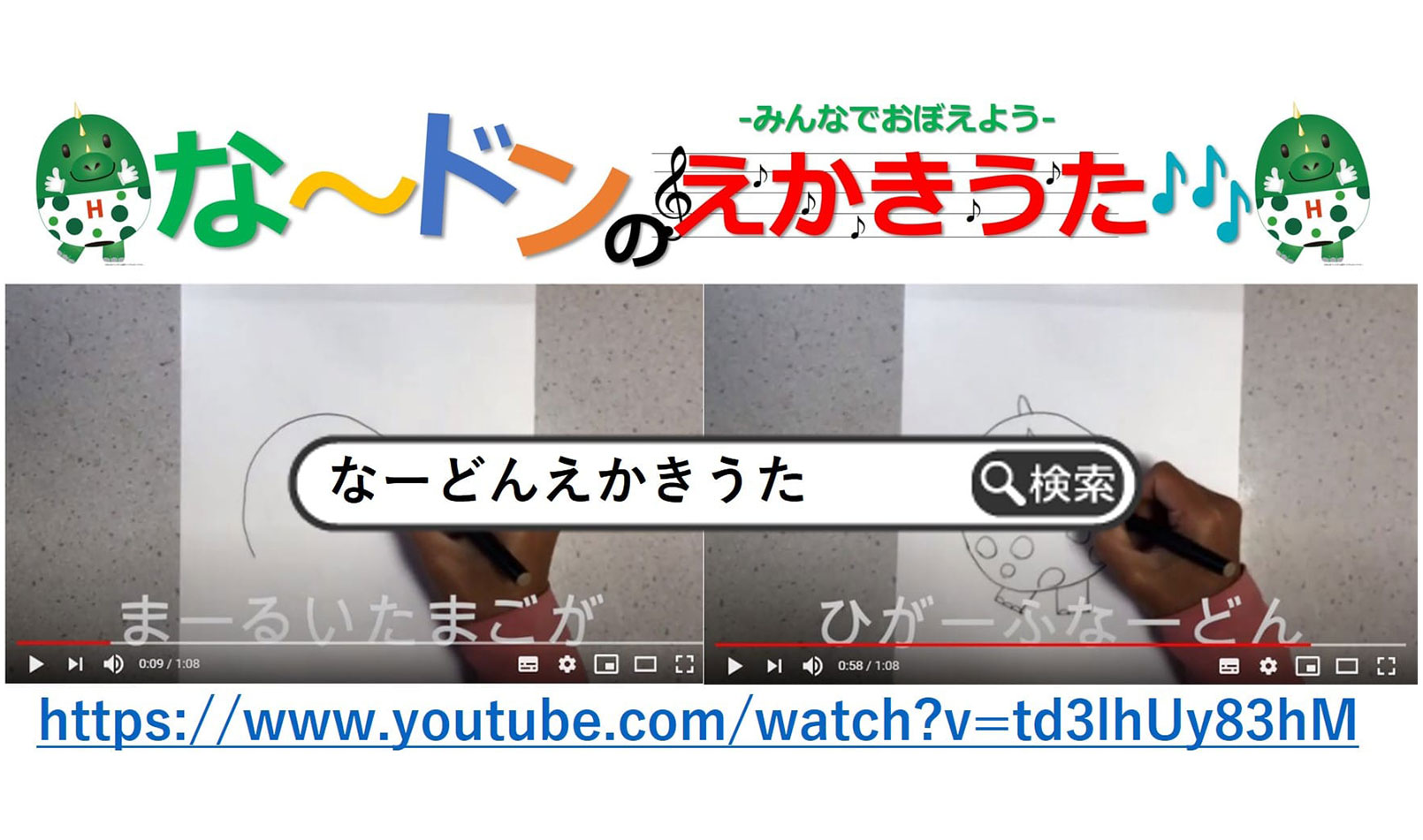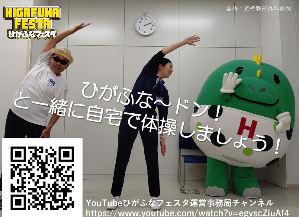 また、東船橋のキャラ(恐竜の赤ちゃんです♪)な〜ドンのえかきうたや、船橋整形外科病院とコラボした体操の動画今日も明日もイイネ!イイネ!は、お子様と一緒に画面の前で楽しめますね♪