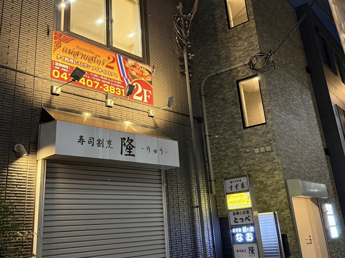 「メイサイストア2」の現地の写真とともに、情報提供をいただきました。「寿司割烹 隆ーりゅうー」の2階、2025年6月まで営業していたタイ料理「バルクントァン」の跡地です。「メイサイストア」は、北習志野駅近くで大人気のタイ料理やさん。カレーをはじめ、本場のグルメが日本人も楽しめる美味しさで提供されていてお腹も大満足・メニューも豊富。地域の方に愛されています。