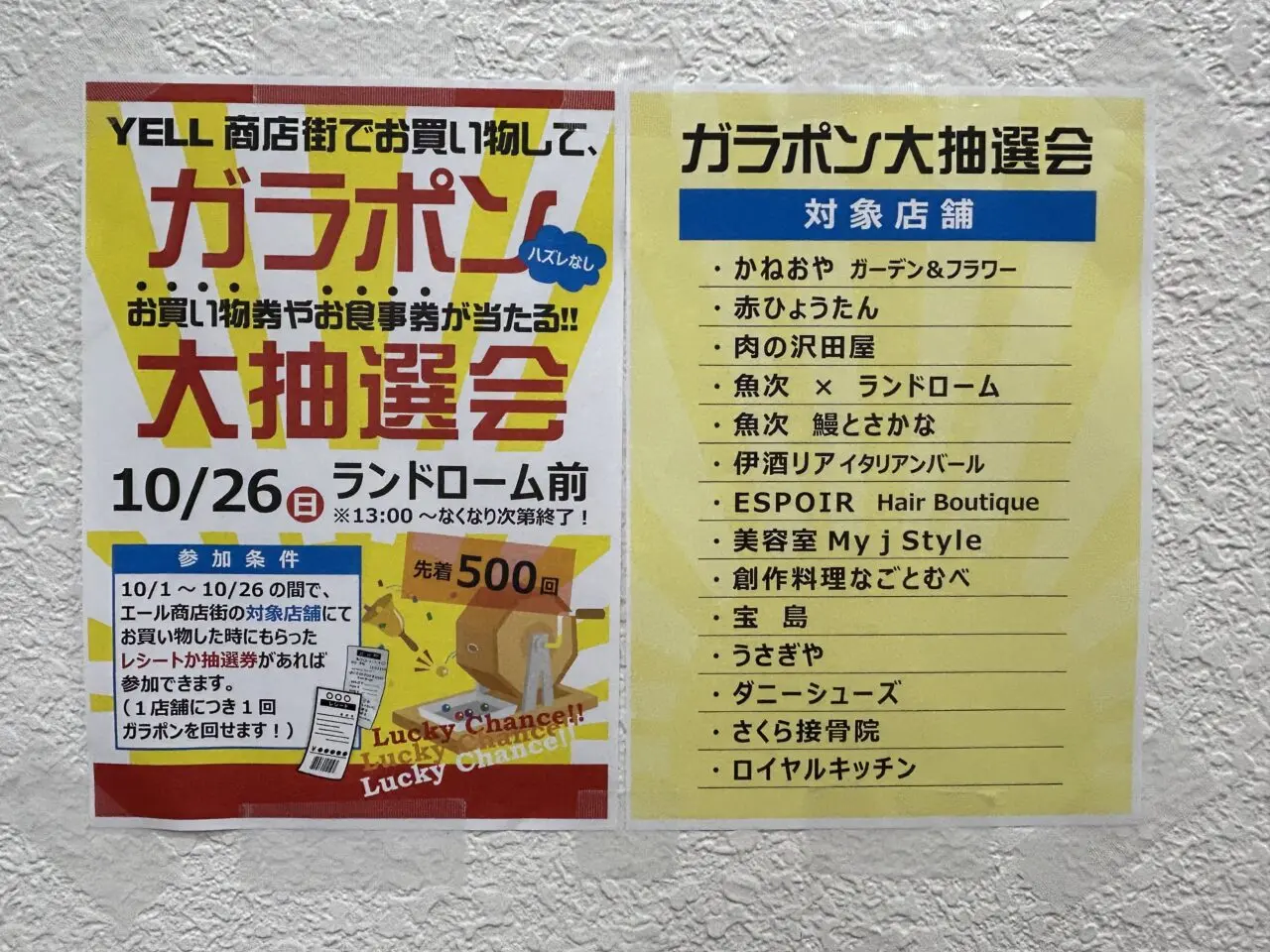 対象店舗でのレシートで参加できるガラポン大抽選会では豪華お買い物券プレゼントも。大人も子どもも盛り上がっちゃいましょう!もちろん、グルメもたくさん◎