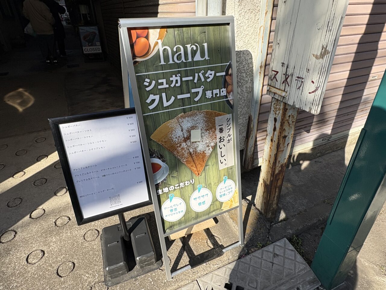 2026年1月17日にオープンした、シュガーバタークレープ専門店「haru」。テイクアウトのお店です。