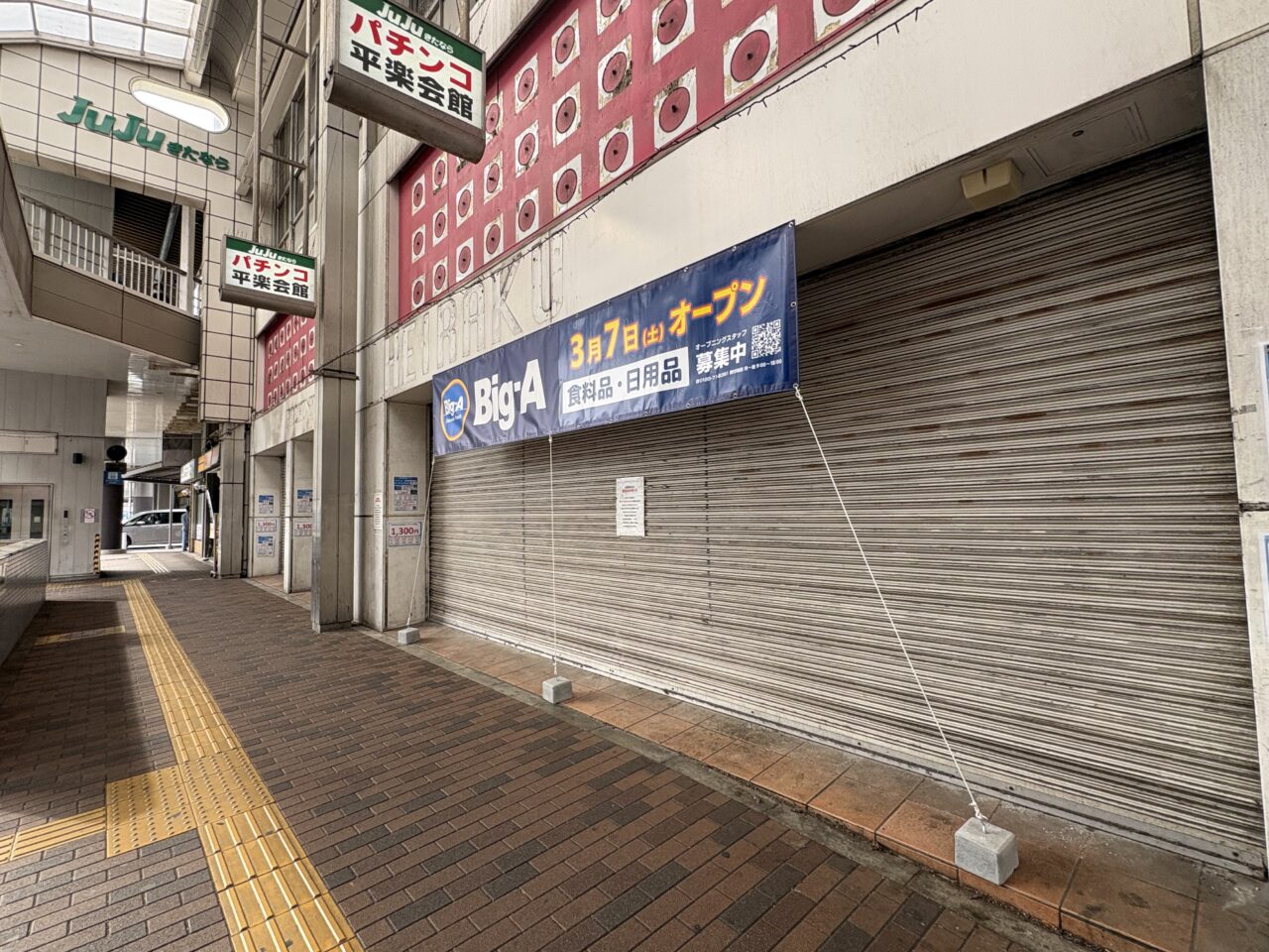 2026年春、北習志野駅前に、Big-Aがオープンすることがわかりました!場所は商店街JUJUきたなら内、駅から徒歩1、2分の、2022年末に閉店したパチンコ店「平楽会館」跡地です。