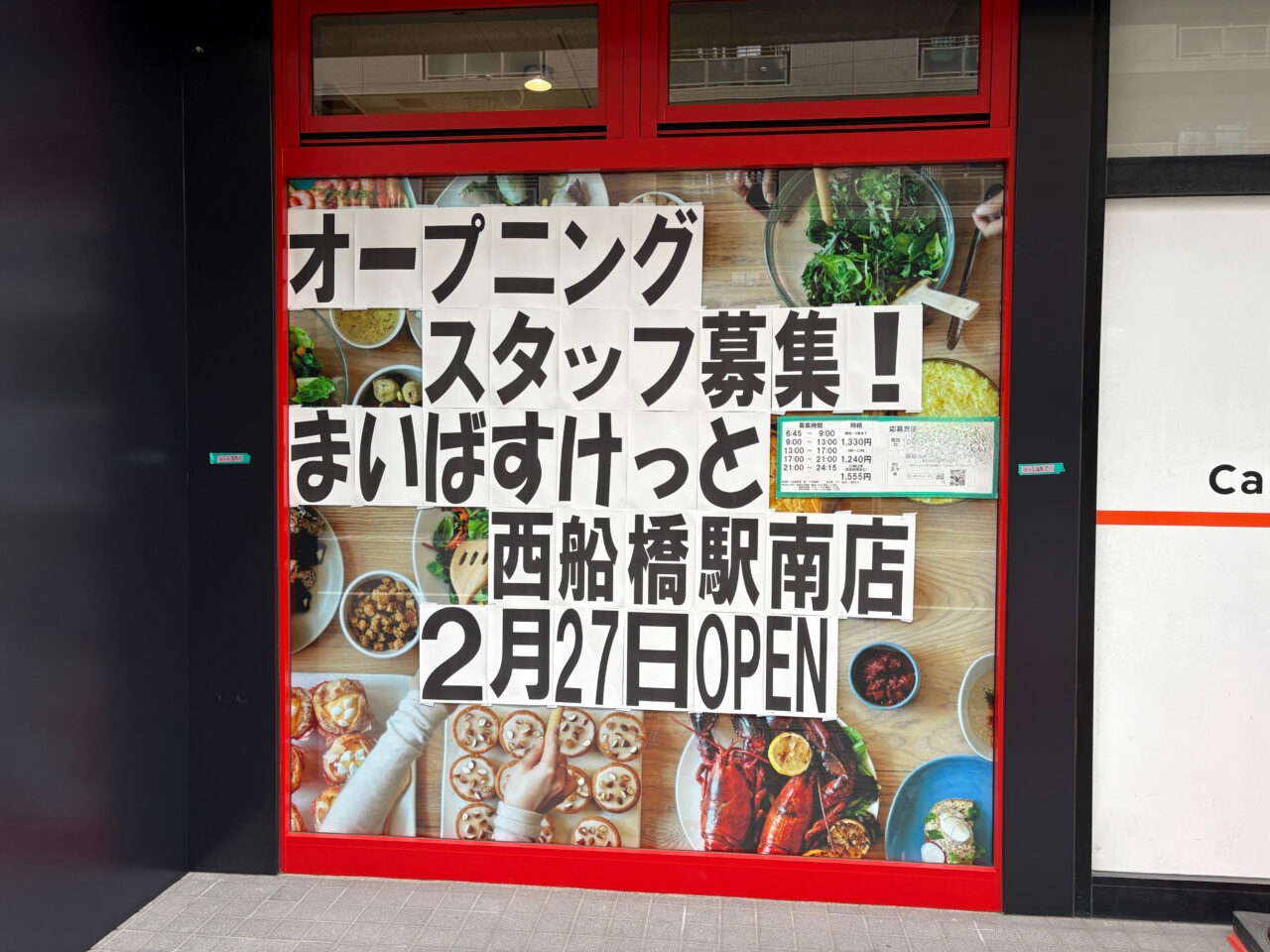 西船橋駅南口を出てすぐの大通り沿い、キャンドゥ西船橋南口店のお隣に、「まいばすけっと」がオープン予定です!