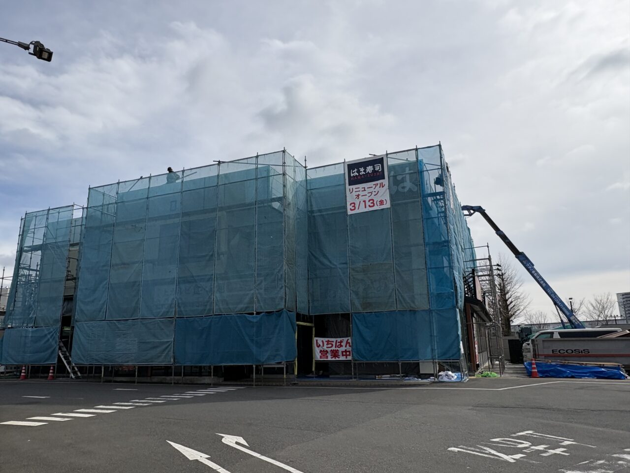 【船橋市】船橋競馬場近くの「はま寿司」がリニューアル工事中。3月半ばにしオープン予定です。