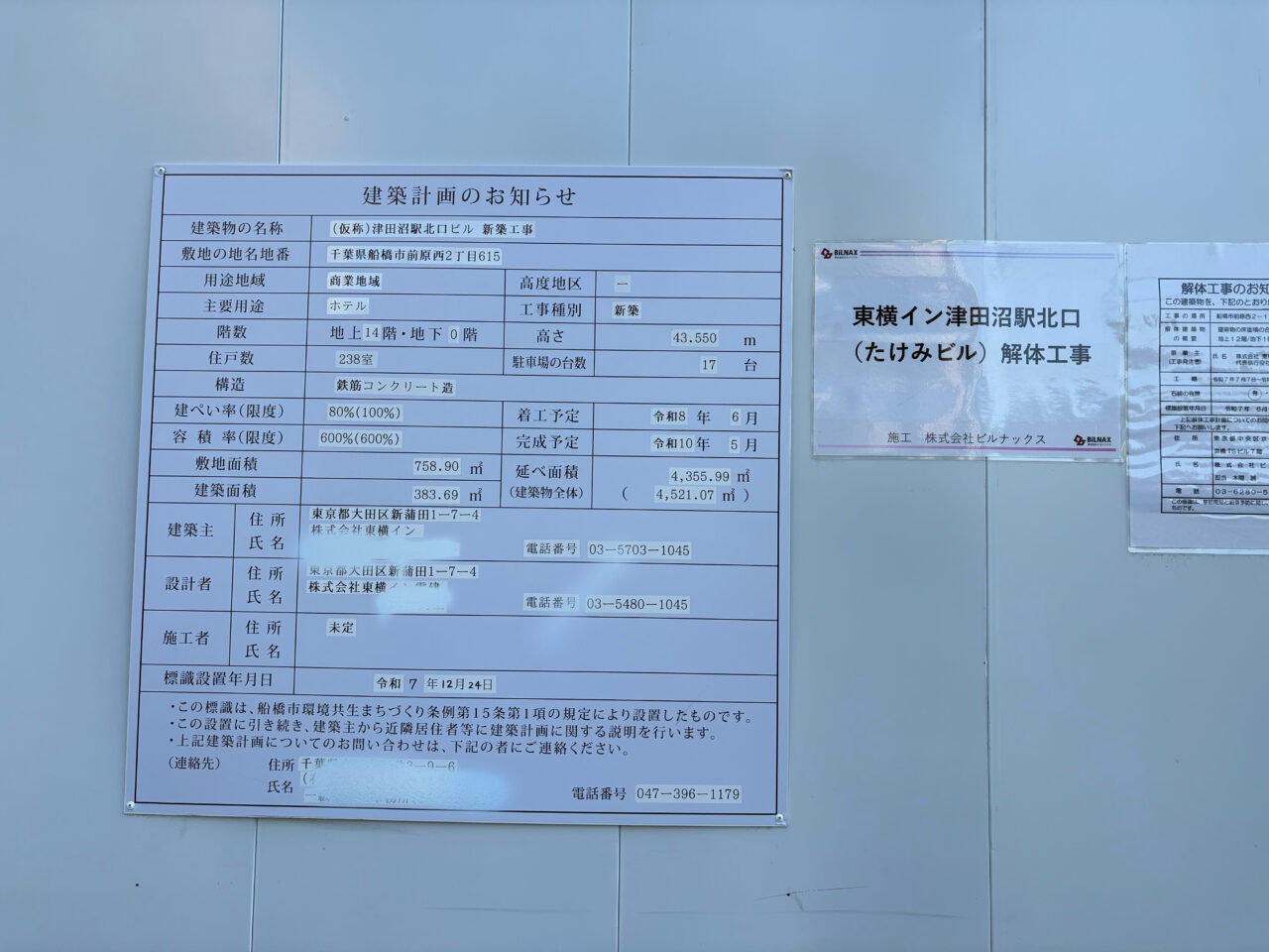 【船橋市】津田沼の「東横INN」、建て替えられて2028年にオープン予定!