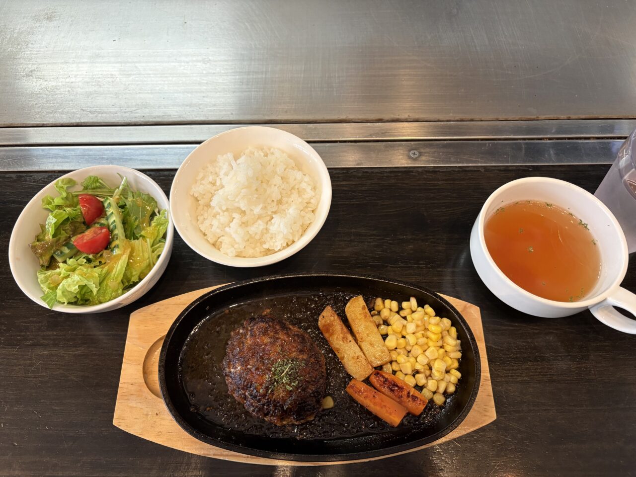 ランチタイムにお伺いしました。看板メニューは和牛ハンバーグ。