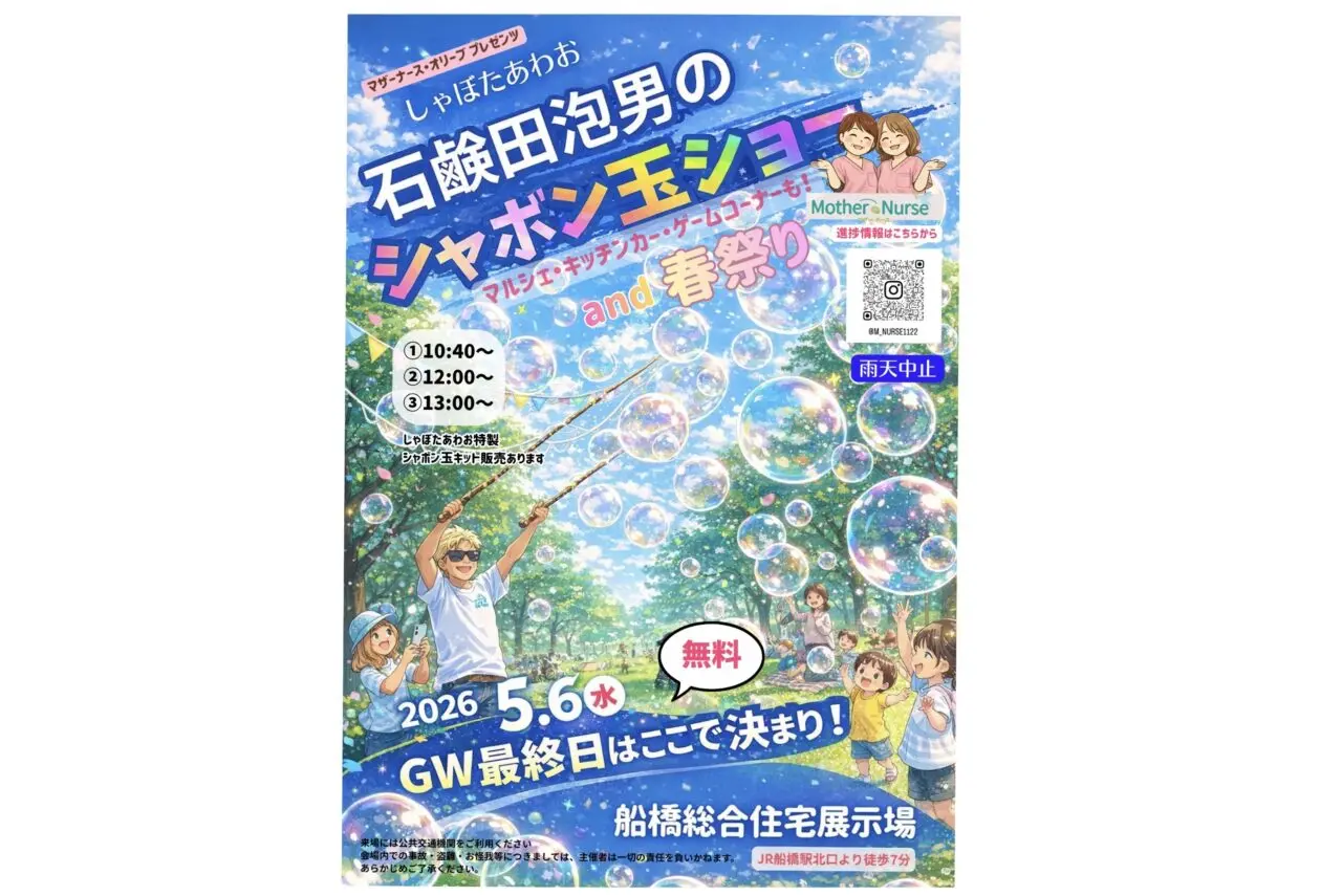 2026年5月6日、船橋総合住宅展示場にて『シャボン玉ショーと春祭り』が開催されます!